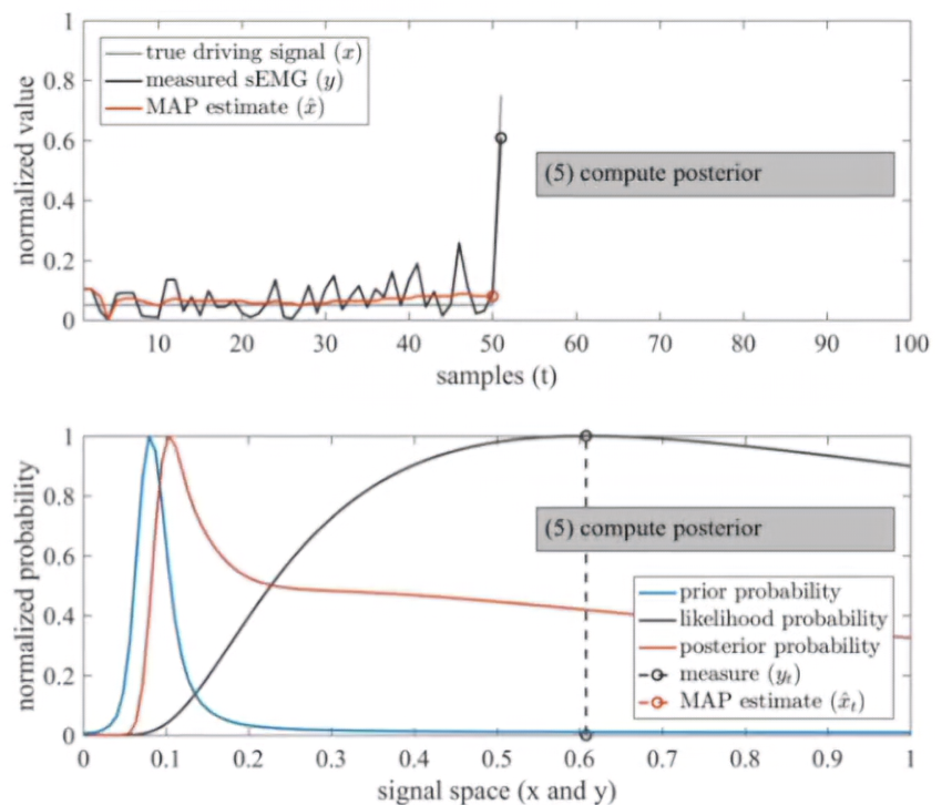 Estimates the hidden signal from the measured signal containing noise, using Bayes theorem.