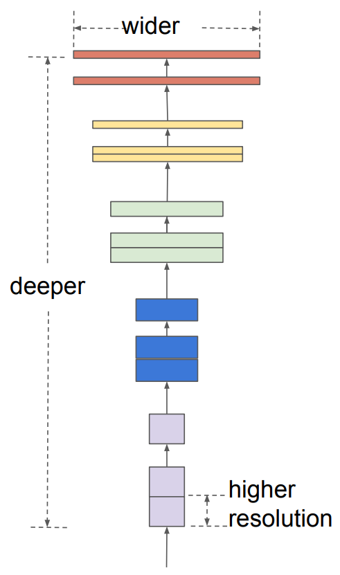EfficientNet introduces a compound scaling method that uniformly scales network width, depth, and resolution using a compound coefficient .