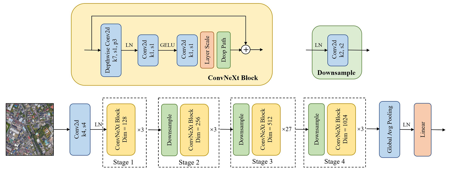 ConvNeXt block is the basic building block of the network. It is a modernized version of the ResNet block. It consists of the following layers in sequence: