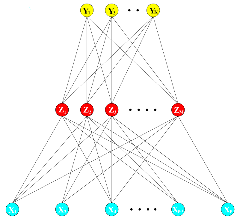The derived features are constructed by an Activation Function and linear combinations of the inputs. where is an Activation Function