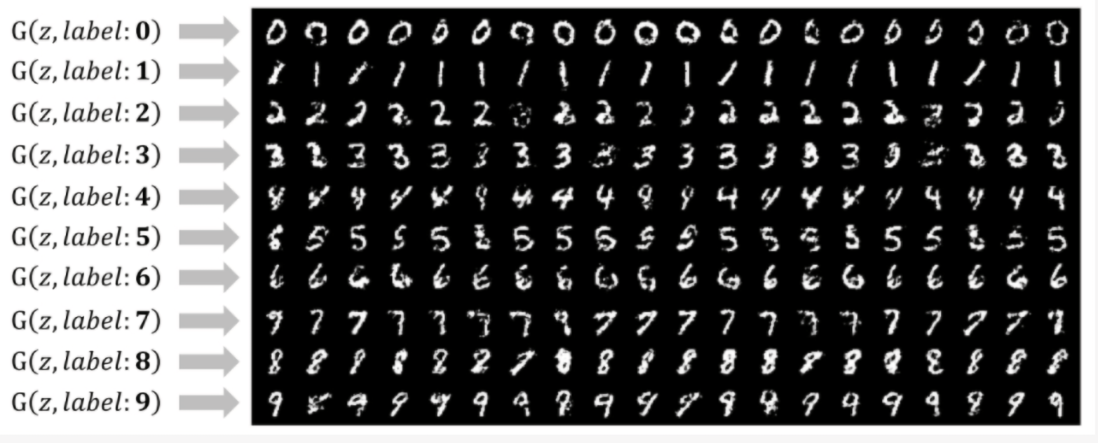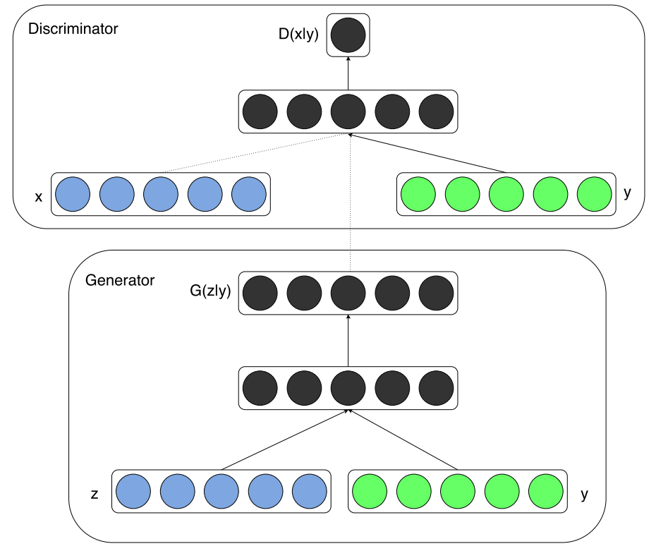 The generator learns to create samples that match the given condition, and the discriminator learns to distinguish between real and fake samples, considering the condition.