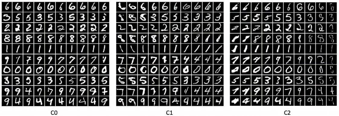 The core idea of InfoGAN is to maximize the Mutual Information between the latent code and the generated samples . This encourages the model to learn representations corresponding to semantic features of the generated output. InfoGAN introduces an auxiliary network that attempts to recover the latent code from the generated samples.
