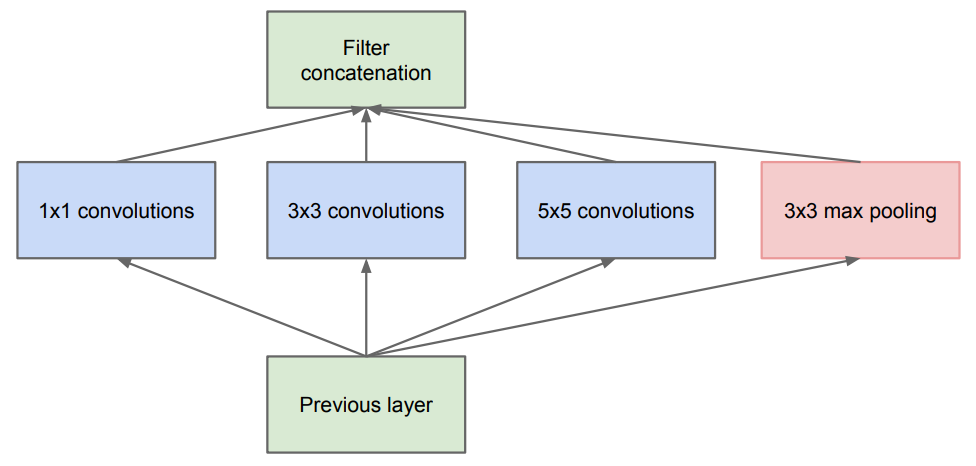 Inception module is a building block of the inception net. It uses multiple filter sizes (, , and ) and pooling operations in parallel, allowing the network to capture features at different scales simultaneously.