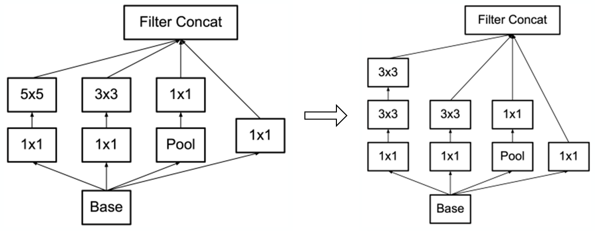 The large convolutions in the inception module were replaced with multiple smaller convolutions reducing parameters and computational cost.