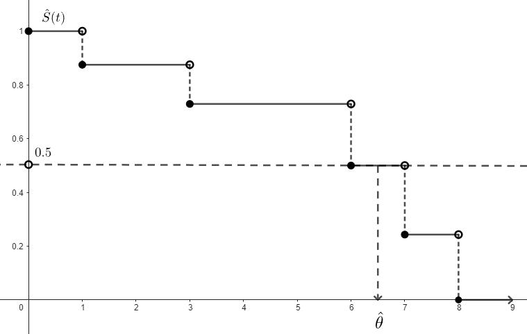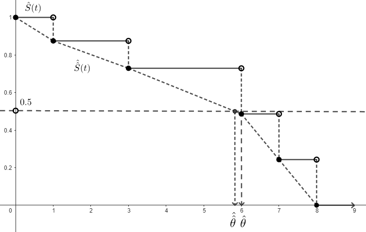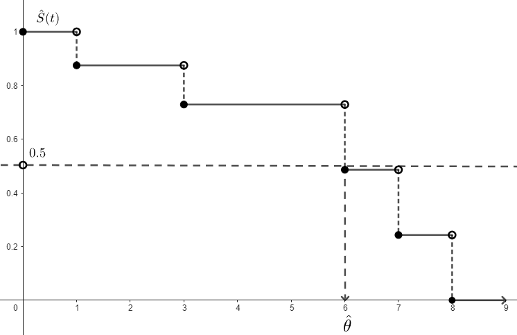 where is calculated by the Kaplan-Meier Estimator and is the jump size at .