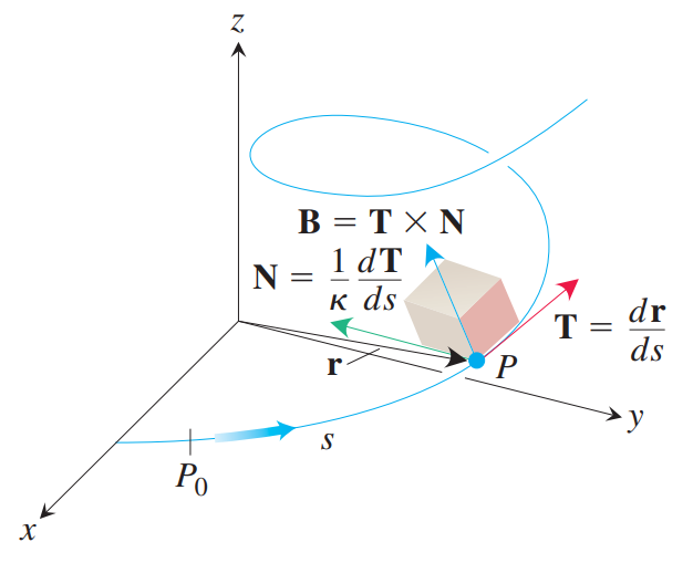 Let be a Unit Tangent Vector of a smooth curve, be the Principal Unit Normal Vector, and be the Binormal Vector