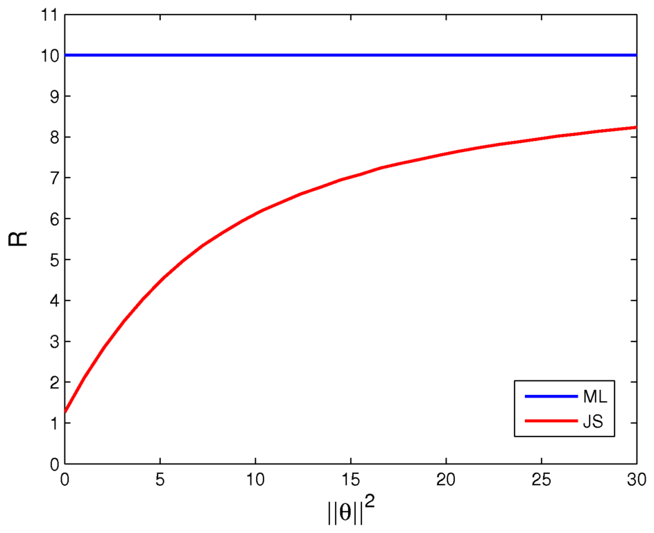The Least Squares Estimator is MLE and UMVUE. However, in terms of Mean Squared Error, James-Stein estimator is better than the least squares estimator for cases.