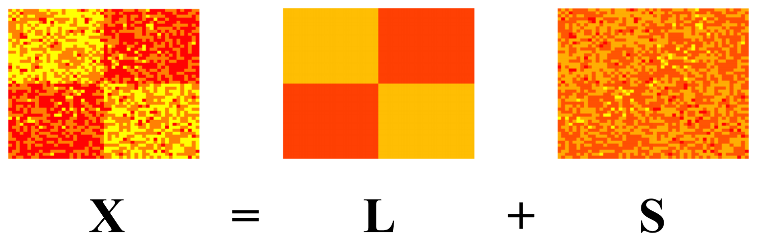 The optimization problem of Robust PCA is set up as where is a low-rank matrix, is a sparse matrix, and is the number of non-zero elements in the matrix.