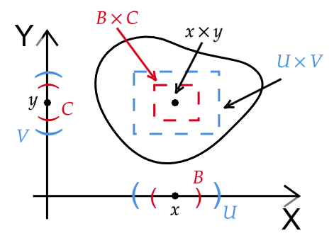 Consider bases for the topologies on . Then, is a basis for the topology on .