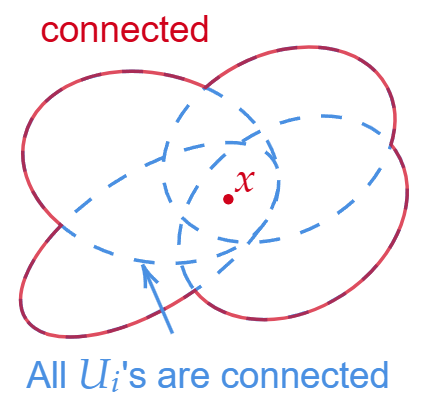 A Topological Space is connected if it can not be represented as the union of two disjoint, non-empty, open or closed subsets. where is a disjoint union.