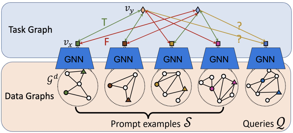 In the pretraining stage, each data graph of prompts and queries is constructed by sampling -hop neighborhoods of the randomly sampled nodes.