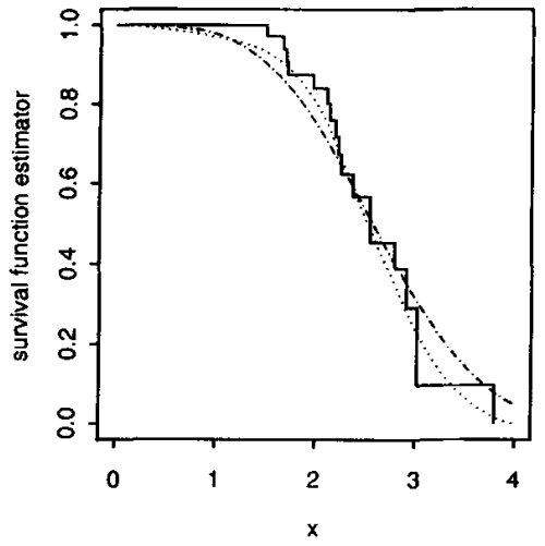 With no censoring present, the least squares estimators of the parameters are obtained by minimizing where is the Empirical Distribution Function of where .