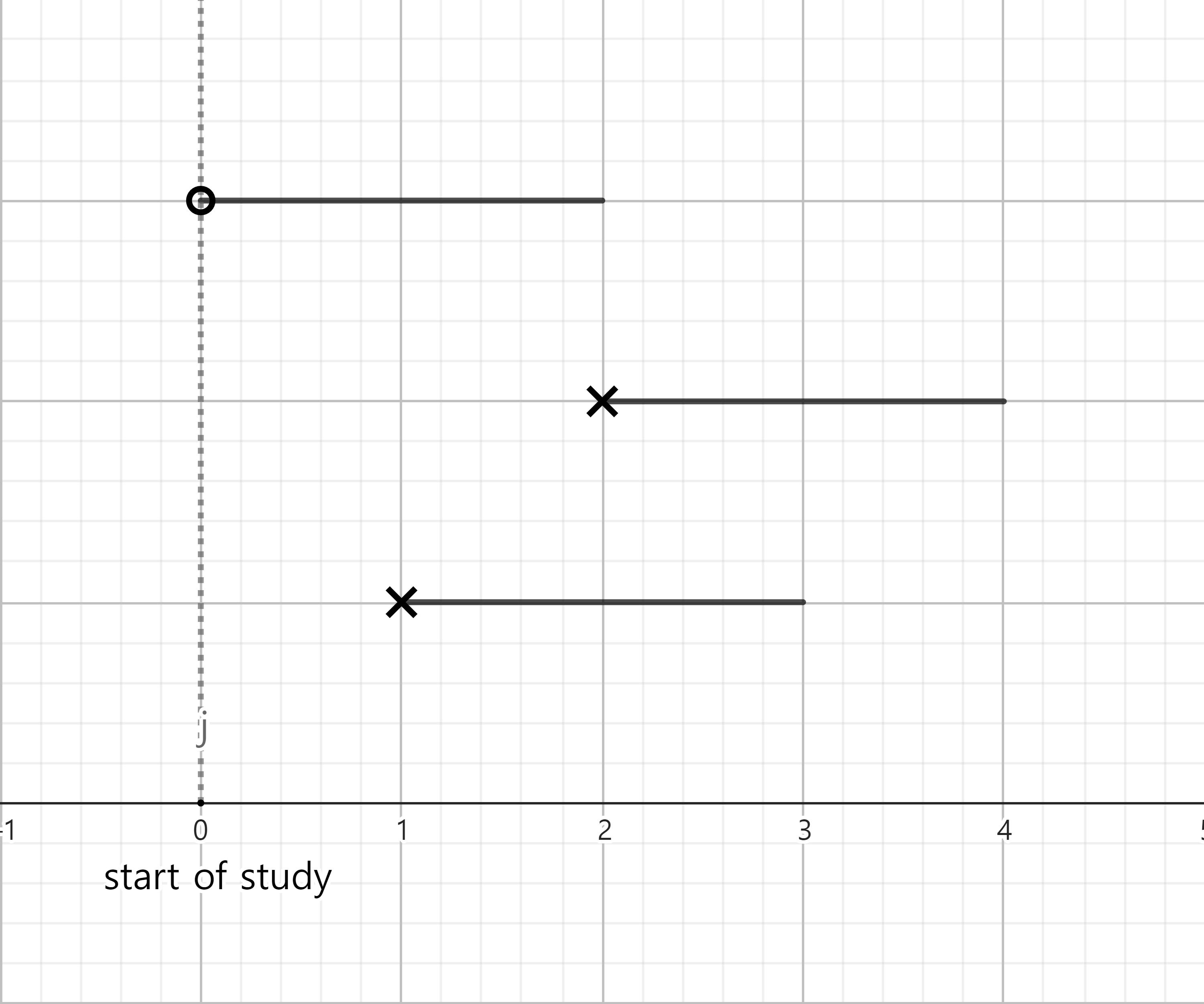 Suppose that are i.i.d. random variables represent survival times. Interval censored data is given as an interval, not an exact point of time. We only observe the interval that includes Interval-censored data is divided into four cases.