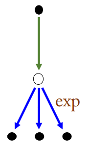 Example of a simple MDP with three states (green circles) and two actions (orange circles), with two rewards (orange arrows)