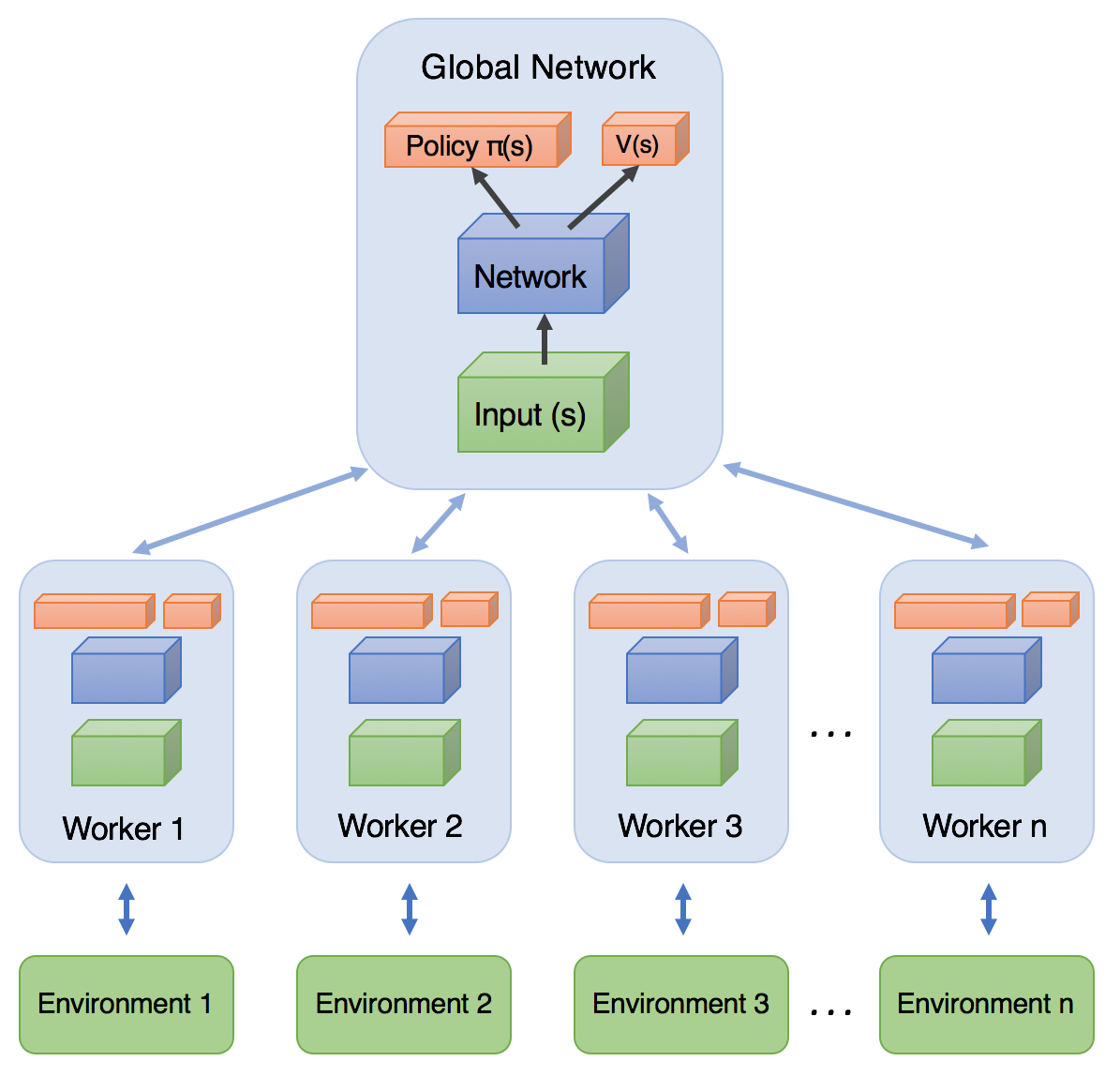 For each state-action pair , the algorithm estimates the probabilities that the return will fall into each -th bin. The probabilities are estimated by a neural network, which takes the state as input and outputs a vector of probabilities for each state-possible action pair . The Softmax Function ensures the properties of the probability of the output for each state-action pair. where are the raw outputs (logits) of the network for the -th atom and action , and represents the network’s parameters.