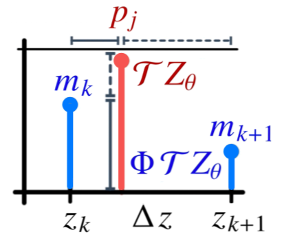 - Distribute the computed probability mass to the neighboring bins in the support proportionally to the distance from each original point: , where is the projection operator.