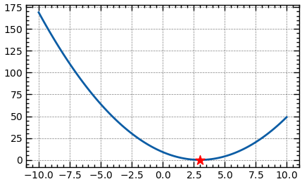 print(f'argmin: {res.x.item():.5f}, min: {res.fun:.5f}')Optimization with Constraints and Bounds