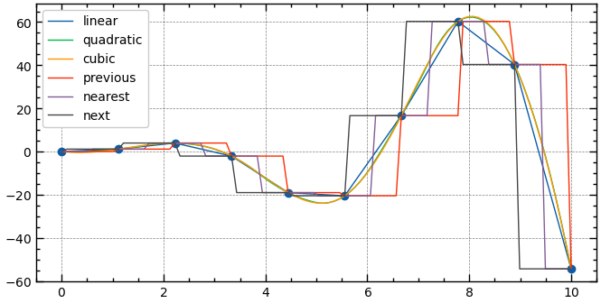 ['linear', 'quadratic', 'cubic', 'previous', 'nearest', 'next']