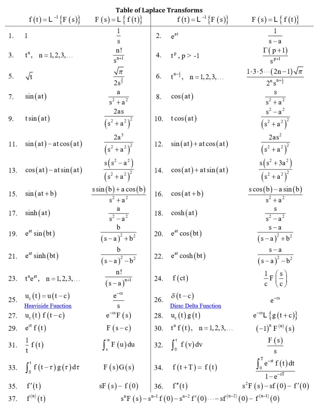 Table of Laplace transform