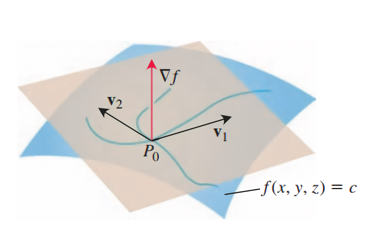 The tangent plane at the point on the level surface of a differentiable function is the plane through and normal to the gradient